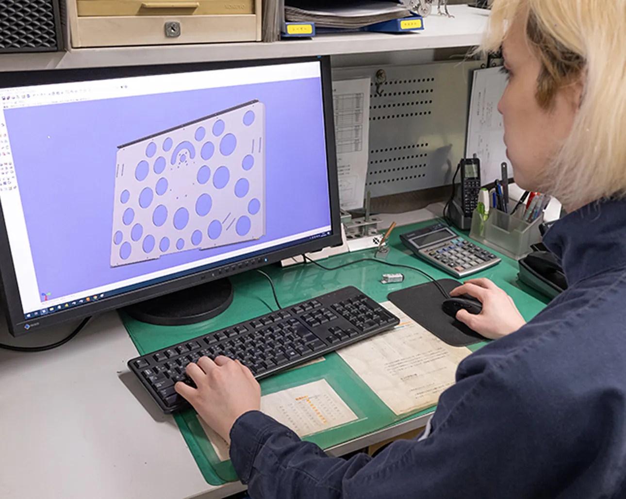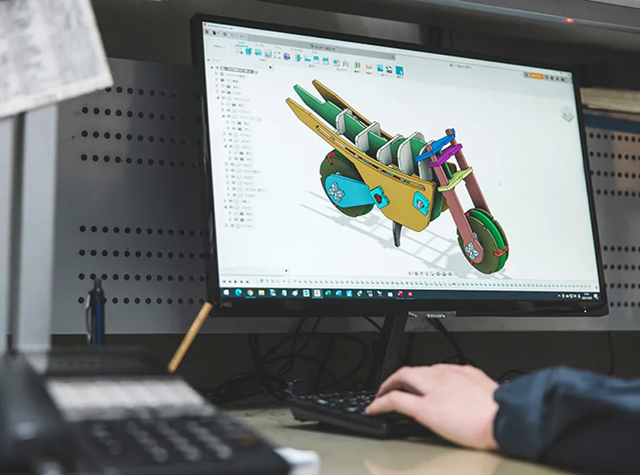 金型の設計から製作まで行っています。設計ソフトを使いこなすデジタルなスキルと、金属を知り尽くした職人の感覚を融合させ、高精度な金型製作を実現しています。